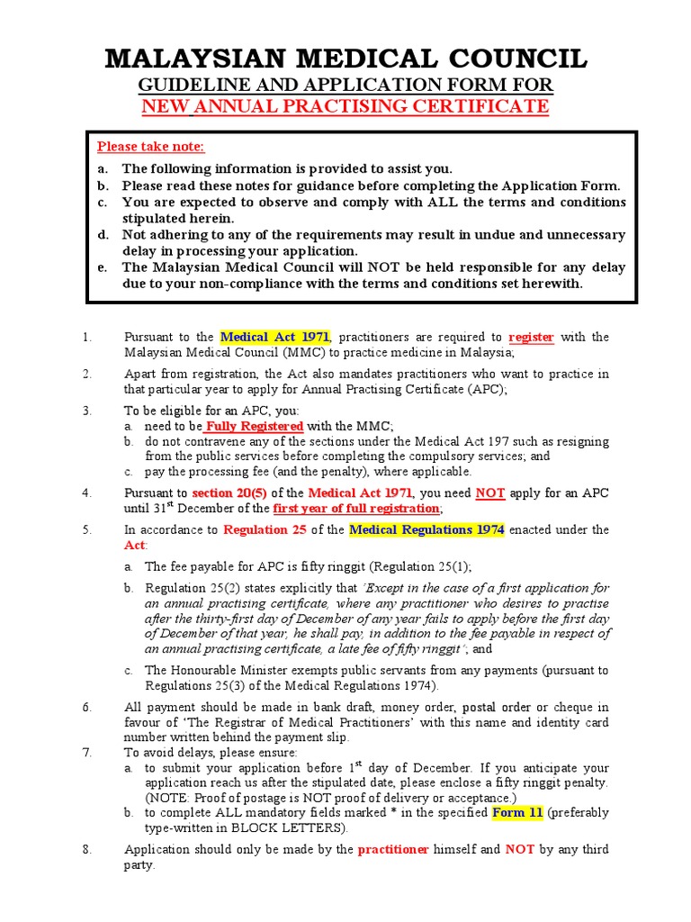Malaysian Medical Council Apc / Your apc will be send directly to you by post.